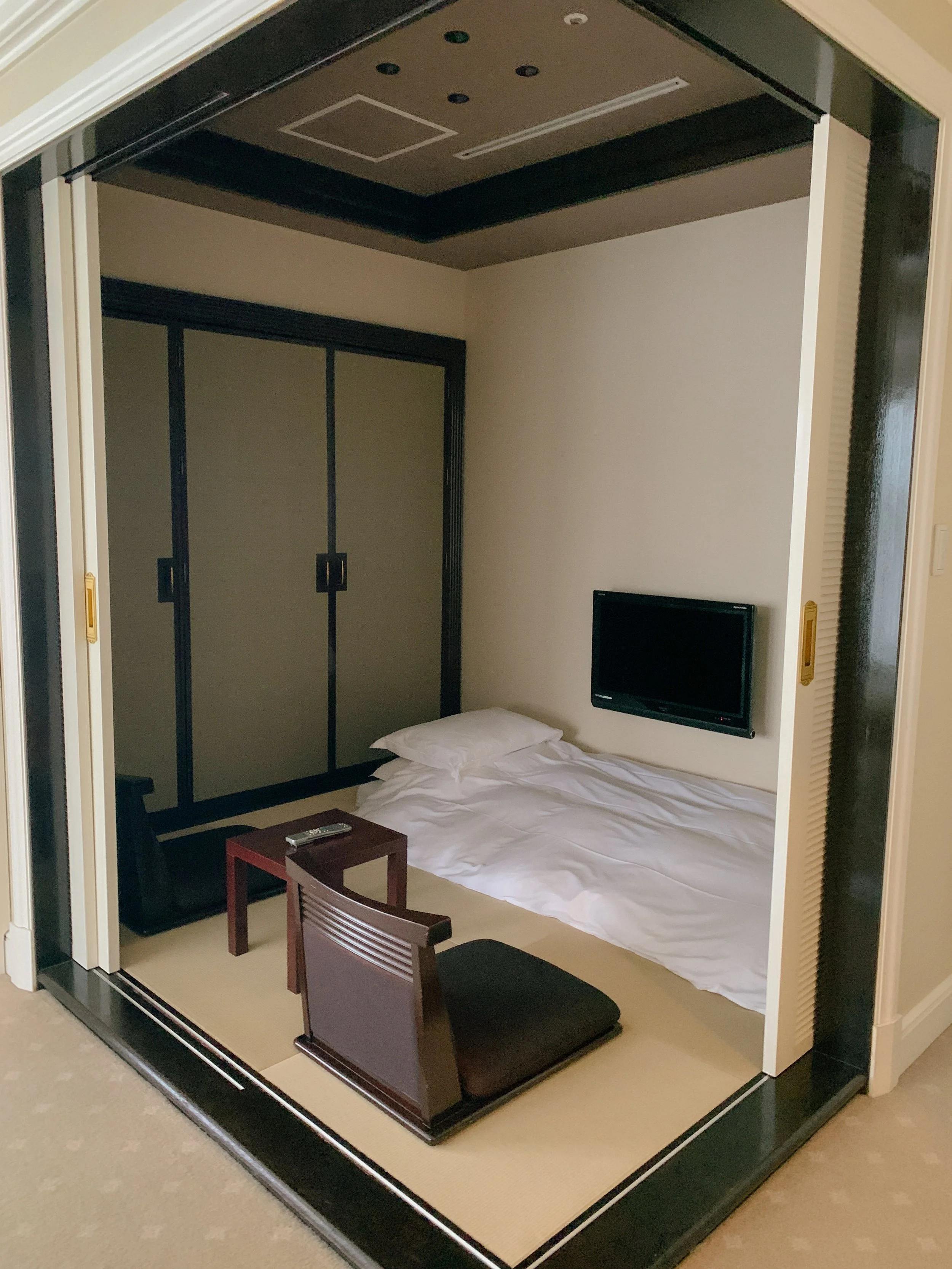 This time, we booked a corner room for more space and a better view. At 73 sqm, the room felt generously spacious, especially appreciated when traveling with a toddler. The layout includes a tatami area, a large dressing room, and a beautifully designed bathroom equipped with a jacuzzi and TV.